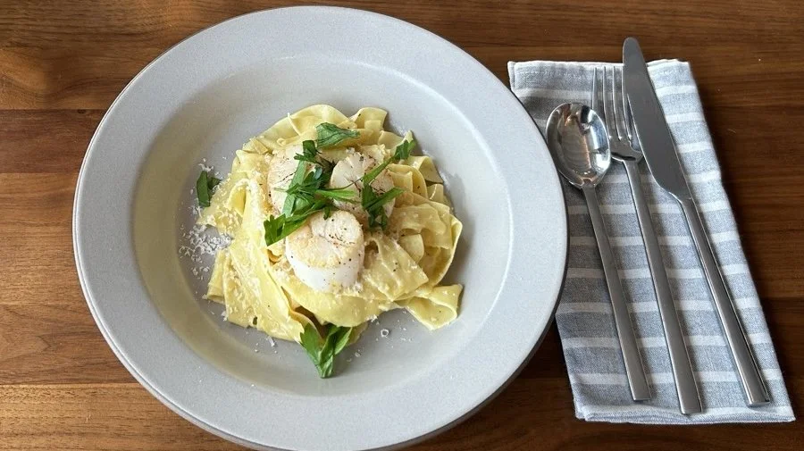 What could be better than hand-cut pappardelle with succulent scallops, all drenched in a luxuriously fragrant saffron cream sauce. This is a recipe that's sure to impress even the most discerning palates.
